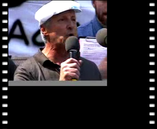 ジャック・ヘイマンはILWUローカル10を代表して、ILWUの労働者はイラク戦争とイラク占領に反対して、西海岸港の封鎖に入ることを宣言。