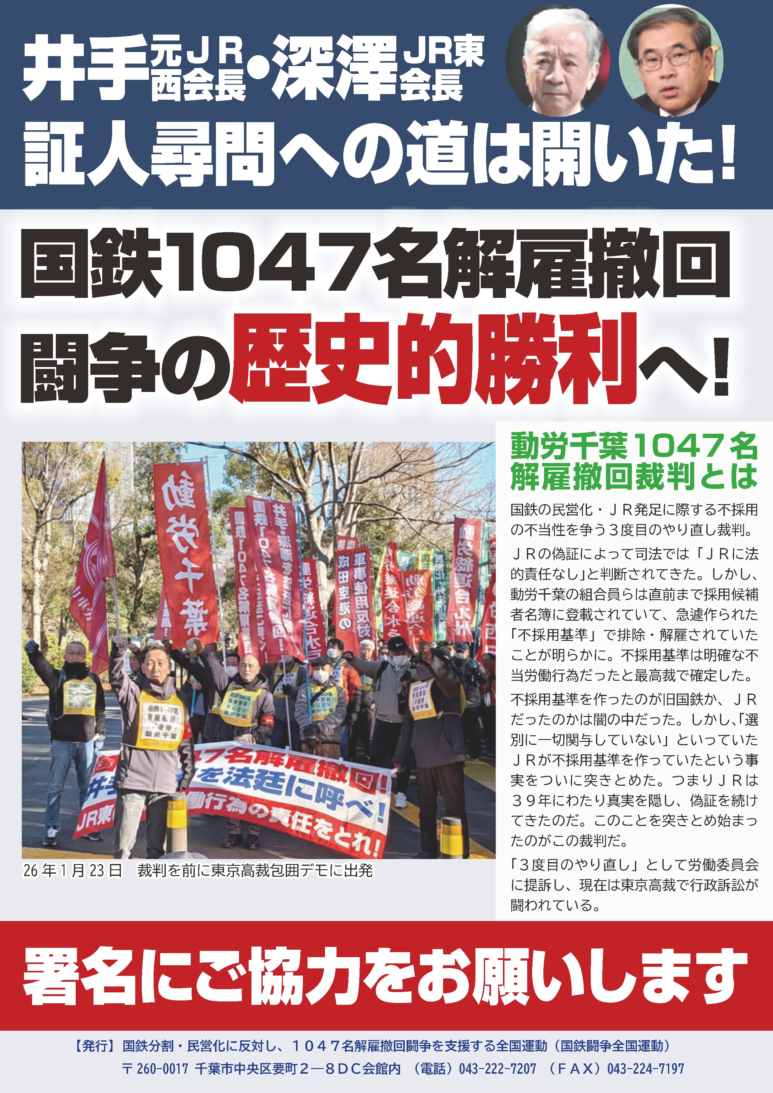 井手・深澤証人尋問への道は開いた! 国鉄1047名解雇撤回闘争の歴史的勝利へ!