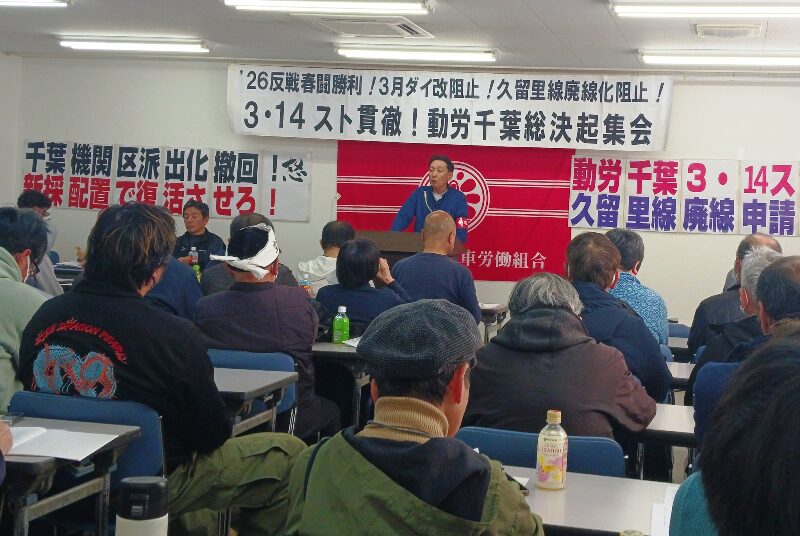 A series of unbelievable major accidents has been occurring at the East Japan Railway Company (JR East). Yet, the JR East is pushing ahead with further outsourcing of railway operations, abolishing retirement allowances and regular pay raises, dismantling even the concept of “workplace” as used in the Labor Standard Act*[i], closing rural lines, and thoroughly dismantling labor unions to replace them with corporate friends’ associations (= Seven years ago, the majority labor union at JR East disappeared, and in its place, a social organization for employees was established. The company is now cultivating this as a management partner, and is even aiming to grant it the same legal status as a labor union in the future). This is how the JR East is pushing this attack. To fight back this assault, we are preparing for three waves of struggle to fight starting today and leading up to April 1.