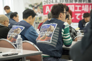 勝利することができた第一の理由は、しっかり団結したからです。労働者の団結が最も重要です。解雇されたおかげで、日本の同志たちにも会い、国際連帯とは何かを全身で学びました。 韓国には日本の企業韓国オプティカルハイテックから解雇され、闘っている労働者がいます。女性労働者が600日の高空籠城を行いました。日東電工の横暴に立ち向かい、闘うオプティカル労働者たちの闘争に多くの関心と連帯をお願いします。