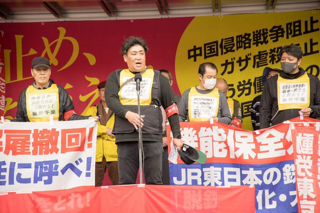 JR東日本の新たなグループ経営ビジョンの狙いは、労働組合つぶしであり、国鉄闘争の最後的解体です。JR東日本は、会社自体を大再編して、現場業務をすべて外注化して、金もうけできる事業だけをJR東日本が担おうとしている。戦争動員のために労働者を団結させないことが会社の狙いです。こうした中で、事故が多発し、安全が崩壊しています。この攻撃と真向から対決し、反戦を労働組合の第一級の課題に掲げて全力で闘います。