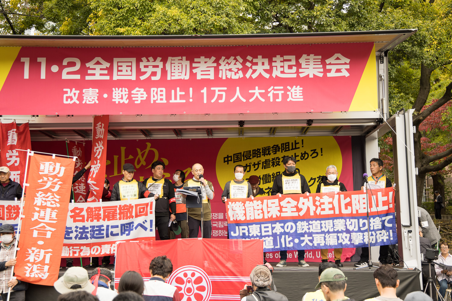 JR東日本の新たなグループ経営ビジョンの狙いは、労働組合つぶしであり、国鉄闘争の最後的解体です。JR東日本は、会社自体を大再編して、現場業務をすべて外注化して、金もうけできる事業だけをJR東日本が担おうとしている。戦争動員のために労働者を団結させないことが会社の狙いです。こうした中で、事故が多発し、安全が崩壊しています。この攻撃と真向から対決し、反戦を労働組合の第一級の課題に掲げて全力で闘います。