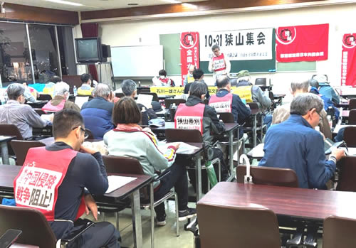 動労千葉からは川崎執行委員が発言し「11・2集会に総決起しよう」と訴えた。集会後、参加者は、雨天をついて渋谷駅から代々木公園までのデモ行進を行い「狭山差別裁判糾弾」「米日の中国侵略戦争阻止」を訴えた。