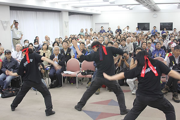 臨場感あふれる力強い律動の後、民主労総の4人の代表者からアピールが行われた。鉄道労組のオムギリョンさんは、『さる10数年間、鉄道労働者は民営化に反対し、時には失敗し、時には成果を出しながら、休むことなく闘ってきた。最も大きい成果は、国民から広範な民営化反対の支持を獲得したことだ。諦めなければ必ず勝利することを確信している』と訴えた。