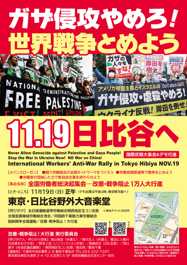 11・19国際反戦大集会<日比谷野外音楽堂>へ : 改憲・戦争阻止!大行進 実行委員会
